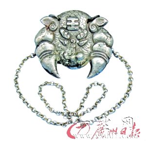 清代银质虎头饰。旧时富贵人家的孩童佩戴胸前祈求辟邪保平安。