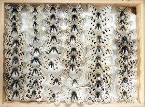 据何鹏介绍,全世界一共有将近一万四千多种蝴蝶,而中国有将近十分之一的品种。虽然在中国收藏蝴蝶还仅仅是一个新兴的门类,参与的人不是很多,但是蝴蝶收藏在海外可是一个热门的收藏。许多国家都有专业的蝴蝶收藏群体,人数庞大。在日本的黄金商业区,可以看到出售蝴蝶标本的商铺,生意很好。我们现在看到的蝴蝶都是被整整齐齐地钉在标本盒里,翅膀展开,很漂亮。但是,蝴蝶被捕捉后,翅膀是被合起来的,放在一个小三角纸袋里,这样便于运输和存放。蝴蝶干燥后,可以在三角纸袋里存放很长时间。但是把它打开做成可供欣赏的标本,需要很专业的技巧。首先不能硬来,因为这时的蝴蝶很脆,一不小心就会折断。要把蝴蝶放在一个潮湿的环境中,用湿巾闷上几天,等待它慢慢变软,然后再慢慢打开,最后钉在标本盒里,供大家欣赏它的美丽。