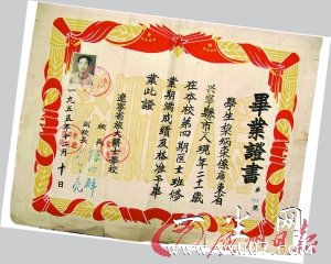 55年眨眼就过去了,如今我两眼昏花,拿东西的手还经常颤抖,很多事情也记不起来了,但这张证书我一直不舍得扔,看到它就好像看到年轻时候的自己。你睇下,我年轻时候的照片还贴在上面,那时候我好靓仔……(讲述人 黎炳荣 记者 曾艳珠)