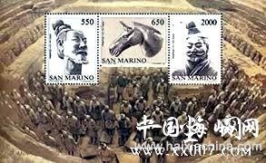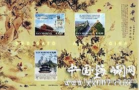中国与圣马力诺1971年建交后,圣马力诺多次发行了与中国相关的邮票,如《秦始皇兵马俑》小型张(图2);1996年,与中国联合发行了《古代建筑》邮票(图3),分别展示了中国的长城和圣马力诺的城堡。圣马力诺城堡是圣马力诺共和国独立自主的象征。