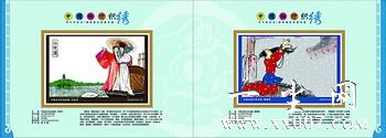 该册重3公斤、大开皮面、金边压膜,中、英文对照,印刷精美,制作考究。内含MP3音乐伴赏器,连接电脑可自行更新内容,作为礼品,传递友情、烘托气氛,可将祝福语、庆典、会议、产品推广等长达2个多小时的音频文件进行存储,可反复充电锂电池。每枚袖珍织绣长24厘米、宽14.7厘米,全套24枚。编号HWZT6,发行量1600套。
