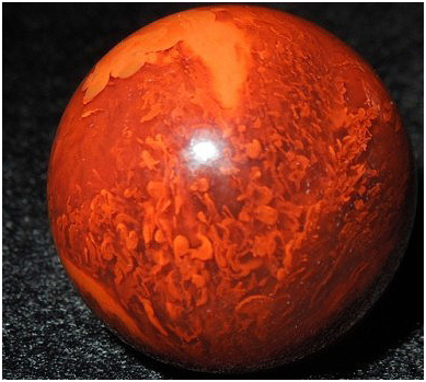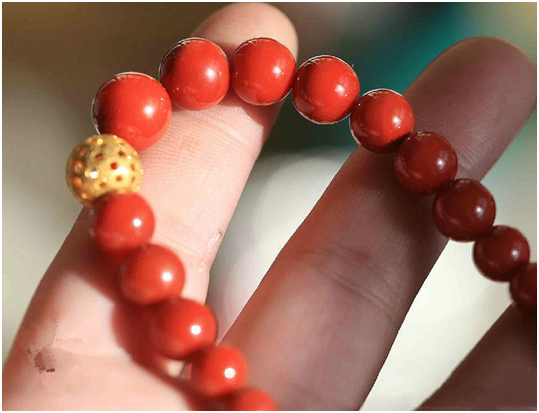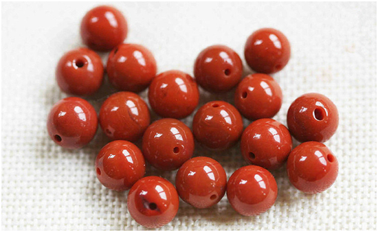 能称之为一级品的范畴的,略比极品差一些,上面有少许纹理,或匀色玫瑰红,注意是匀色玫瑰红,一定是很均匀的混入,是晕色的,而非火焰或明显杂色,匀色混玫瑰红的往往比纯色柿子红的看起来红艳,很受市场追捧。因为极品珠子很少,所以主要收藏热点在一级品上。