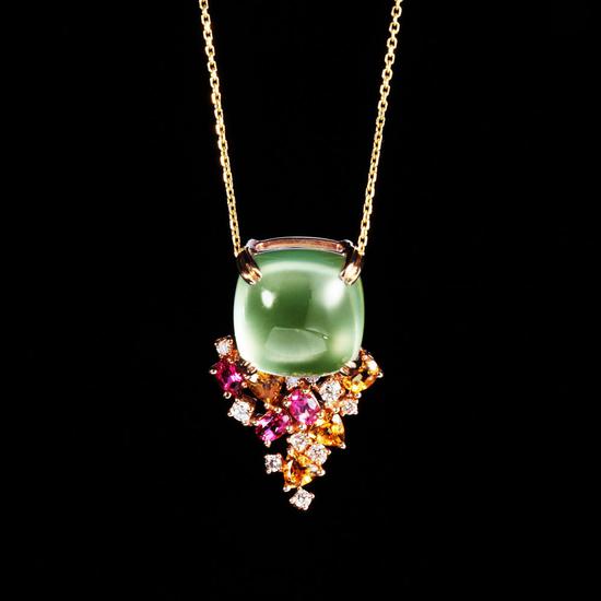葡萄石的质地细腻通透、水润欲滴,充满灵性和内涵,因此受到广泛大众的喜爱。市场上的葡萄石以黄绿色为佳品,呈现金黄色的澳大利亚葡萄石更是不可多得的宝石。