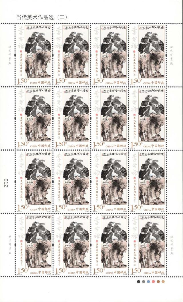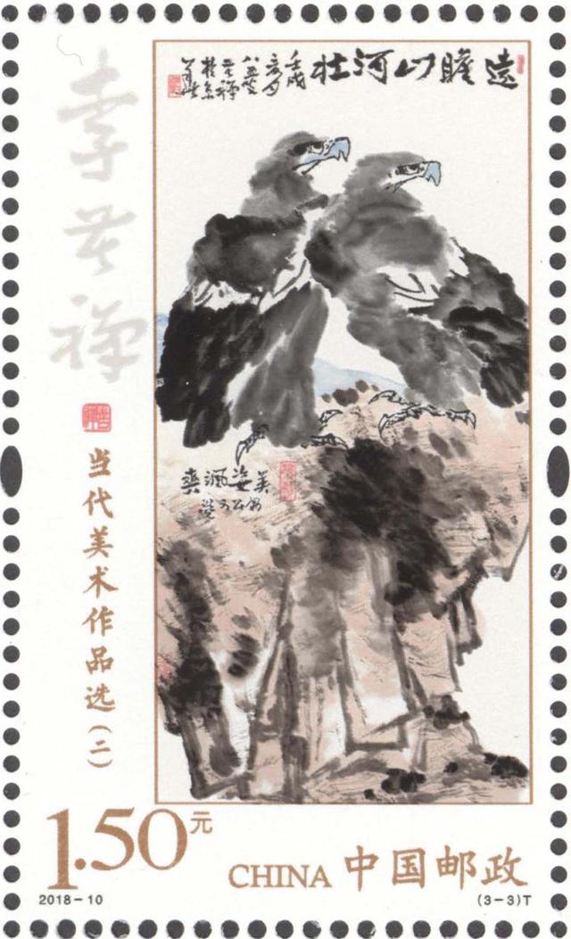 中国邮政定于2018年5月11日发行《当代美术作品选(二)》特种邮票1套3枚,邮票图案名称分别为:丰子恺《仰之弥高》、关山月《秋溪放筏》、李苦禅《远瞻山河壮》,全套邮票面值3.90元。这是继1989年发行的《当代美术作品选(一)》后的第二套。