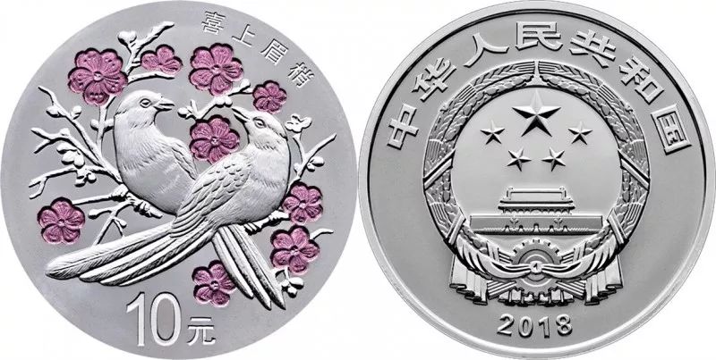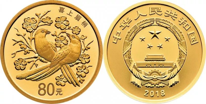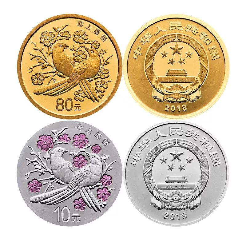 2018年吉祥文化系列金银币第四组——喜上眉梢金银币将于6月20日正式发行,寓意美好,图案精美,这将是2018年吉祥文化的最后一组。