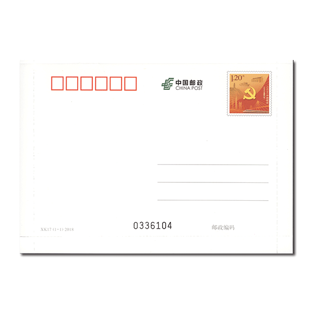 中国邮政定于2018年7月14日发行《不忘初心 牢记使命》普通邮资信卡1枚。详情如下: