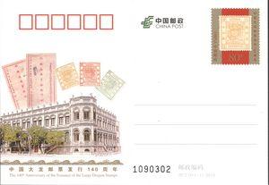 《大龙邮票发行140周年》纪念邮资明信片即将发行
