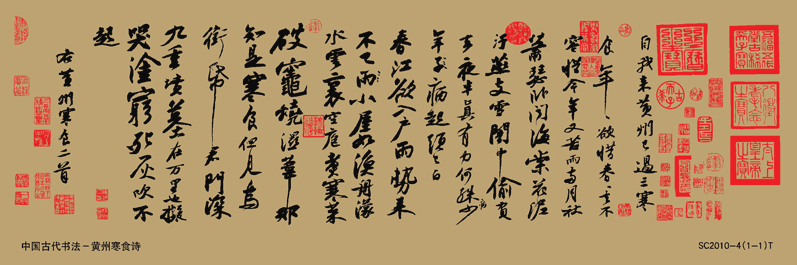 《黄州寒食诗帖》曾经登上邮票,深受广大集邮者喜爱。而全部书法文字、印章都是使用丝线织绣而成的《黄州寒食诗帖》又会让大家感到独特和新奇。一个使用宣纸印刷,一个使用丝线织绣,相应成趣。