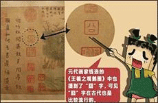 上周末到纽约大都会博物馆看展览,看到一幅元代画家钱选的《王羲之观鹅图》,正在做仔细观摩状,赫然发现上面居然有一枚小巧可爱的图章,居然是个“囧”字(图中画圈处),这么现代的网络用语难道在古代就有,不多说了,给各位看官上图片先。