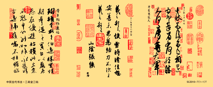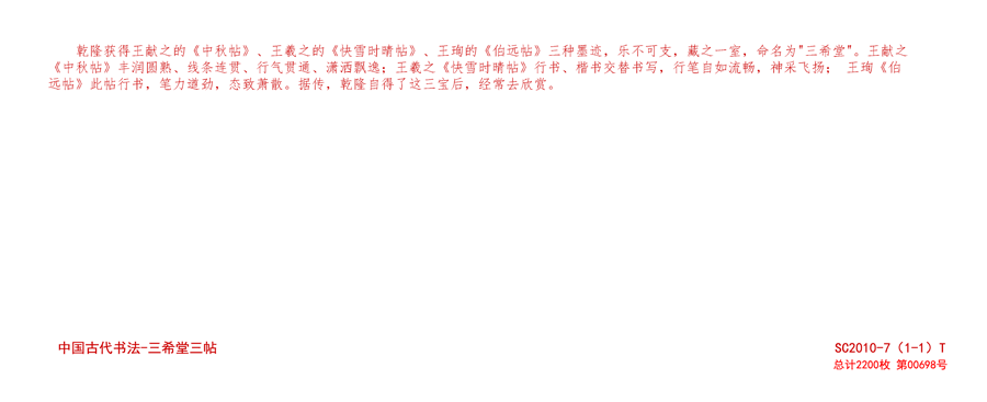 中国古代书法-三希堂三帖 袖珍织绣正面 规格24cmX10cm 发行量2200枚