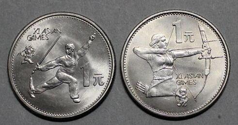 为庆祝第十一届亚运会在我国盛大召开,中国人民银行于1990年8月22日发行了这套第十一届亚运会纪念币,这组纪念币共分为两个品种,面值均为1元,发行数量足有2560.8万枚,两枚纪念币的正面图案均为第十一届亚运会的会徽以及举行地点和我国国名,背面图案分别为射箭运动员和熊猫盼盼以及舞剑运动员和熊猫盼盼,这两枚纪念币由于纪念意义比较重大,因而也受到了人们的关注,它的发行没经过多少时间就抛放到了市场上。