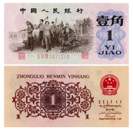 价值最高的“背绿一角”设计与1962年 ,背面图案为墨绿色菊花图案 ,看上去像一只展翅的蝴蝶,故有人称为“背绿券”或“蝴蝶券”,但目前收藏市场上并不多见。“蝴蝶券”背面色泽极易于与 1962年贰角券背面颜色相混淆,发行仅一年。人民银行就决定将其收回。背绿一角成为第三套人民币中发行量最少,发行时间最短、存世量最少的纸币。