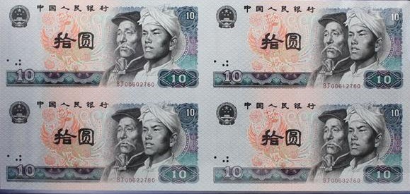 我们国家是在2000年的时候发行了这款80年10元四连体钞,它的发行数量仅仅只有40万套,这也就导致了在物理系违规的纸币收藏界内,这款八零年10元4连体钞的市场价格非常的高昂,并且都一直处在价格不断高升的状态之中。这款80年10元4连体钞票的面值为40元,由四张八零年的十元连体钞票组成。这个连体钞票面使用了我们国家少数民族,满族和汉族两位男子的的头像作为主要的票面图案,可以说是一款极具中国民族风格的收藏品种。