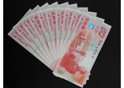 同时,如意说:“新中国成立50周年纪念钞之所以具有如此高的市场价值,首先要取决于独占‘开国第一钞’的美誉,有着不可替代的特殊地位。”对于普通消费者来说,建国50周年纪念钞或许有些陌生,但对于钱币集藏爱好者来讲,这其实是近年来升值很快的黑马品种。业内人士表示,收藏界讲究“连号为王”,单张不如百连号(1刀),稀缺的特殊号码往往更具收藏投资价值。随着近期建国50周年纪念钞单张价值的上涨,其整刀“百连号”的收藏潜力也将随之爆发。据了解,建国50周年纪念钞“百连号”最初发行价格为5000元,目前市场价值为5万元左右,涨幅已达10倍。