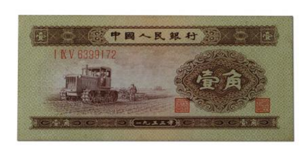 1953年1角人民币具体的发行时间是在1955年,而仅仅过了12年左右的时间之后中国人民银行就开始回收这张纸币。经过了四五十年的市场消耗之后,这张一角纸币基本上是处于供不应求的状态当中,市场上最新的报价已经达到了900元左右。