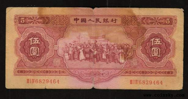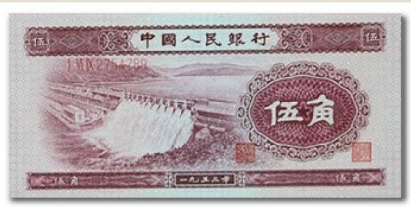 在我国的纸币史上水印一直是纸币的重要防伪之一,而且在所有的收藏性纸币中只要是有水印的纸币其价格都早已高过千元甚至高过万元,这枚53年五角浅版水库(有水印)纸币的价还处于450元左右,全新53年版伍角深版水库无水印价格为680元左右。