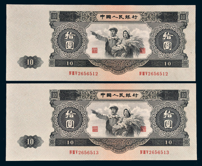 我们国家成立到现在,一共发行了5套人民币。第一套由于时间较为久远,流通的时间也比较的短,那个时代的中国经济非常的拮据,人们生活尚不能保障,又有多少人能够想到收藏人民币呢?所以留下来的第一套人民币非常的稀少,价格当然也特别的高了,几乎都是天价,平常人也很难接触到。所以更多的收藏者眼光在第二套的人民币上面,而且在这套人民币当中,1953年10元是最受热捧的。可以说是这套人民币当中的“币王”。那么它可以在“币王”这条路上持续多久?