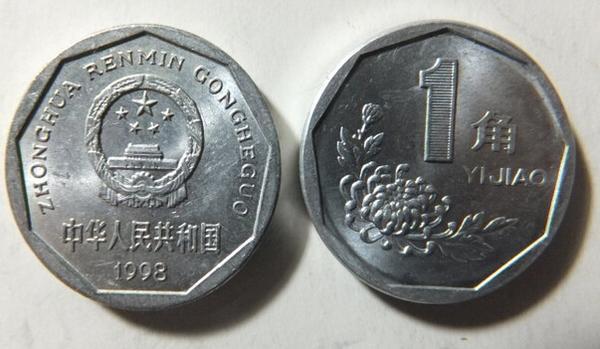 菊花一角硬币今天报价是多少?市面上流通有多少?人民银行总行下发通知,11月1日起,第四套人民币1角硬币(菊花图案)将只收不付,新收及库存第四套人民币1角硬币一律作为残损人民币单独交存人民银行发行库。菊花1角硬币直径22.5毫米,正面为菊花图案,面值1角,注汉语拼音“YIJIAO”。背面为国徽、宋体汉字“中华人民共和国”、汉语拼音“ZHONGHUARENMINGONGHEGUO”、阿拉伯数字年号。币材质为铝镁合金,外齿为光边。
