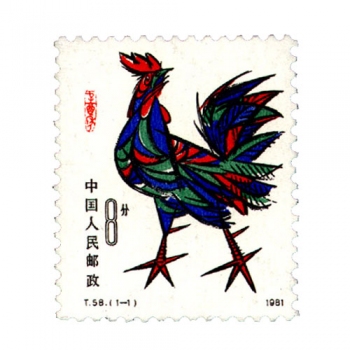 鸡 T58《辛酉年》(鸡)邮票1981年1月5日发行一套1枚,面值8分,同时发行小本票。设计者程传理,雕刻者孙鸿年。现在大版市场价格已由发行时的16.8元升值到5万元左右,升值空间不容小觑。