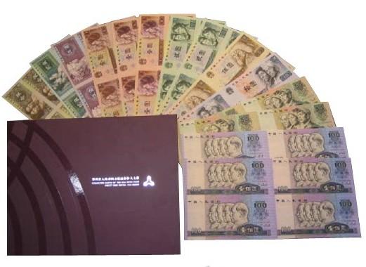 其一,康银阁四连体大全套品种最为齐全,是连体钞中的代表。据了解,此套人民币囊括了全部券别9种面值14个品种,包括了1990年100元四连体,1980年100元四连体,1980年5元、10元四连体体,1980年2元四连体,1990年2元四连体,1996、1990、1980年1元四连体,5角、2角、1角四连体,所有面额后四位数字和证书号码相同,成为连体钞发行史上最齐全的四连体珍藏册;