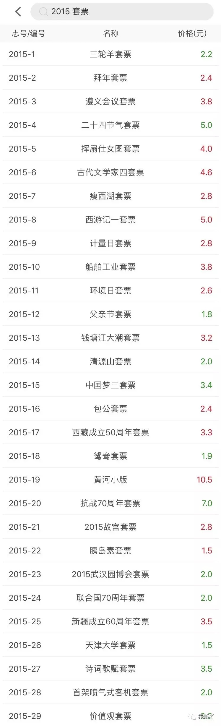 2015年套票目前价格如下:
