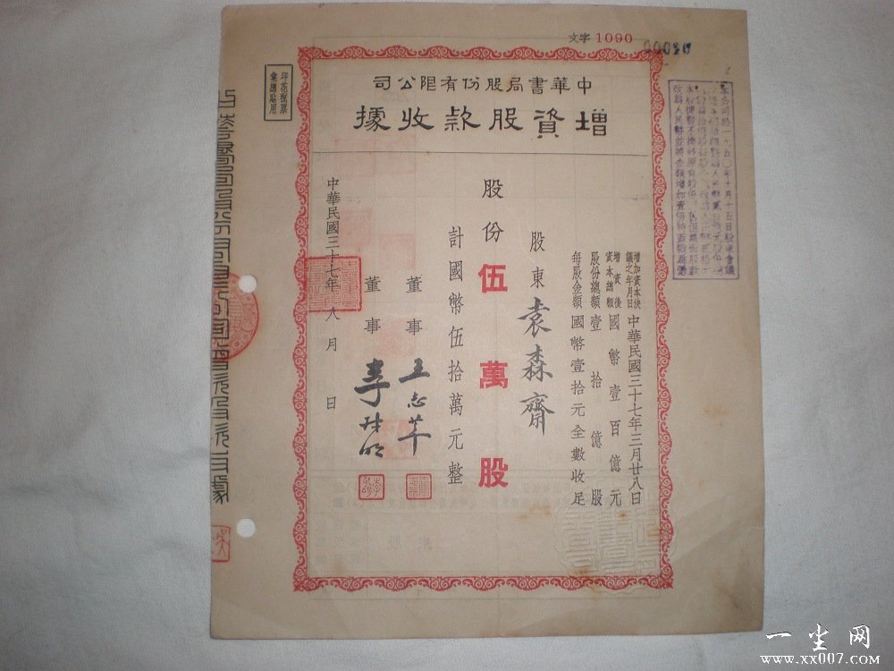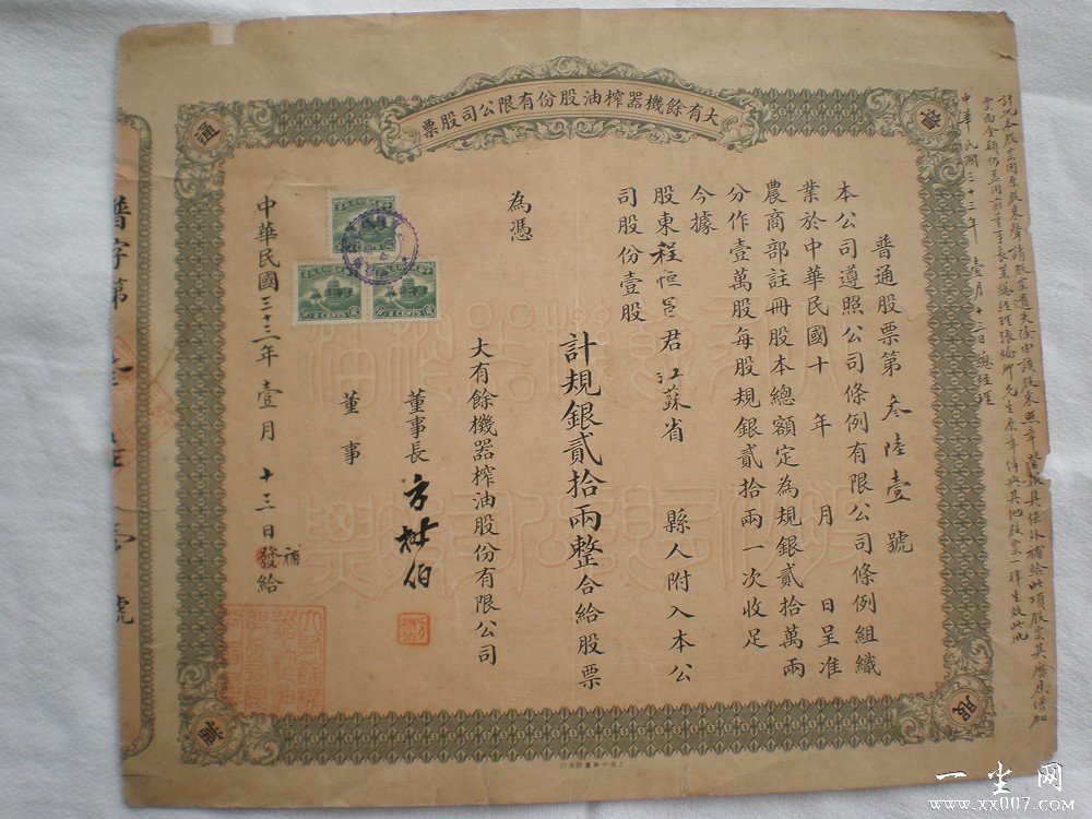 总额规银10万两,中华民国十年呈准农商部注册股本总额为规银贰拾万两。