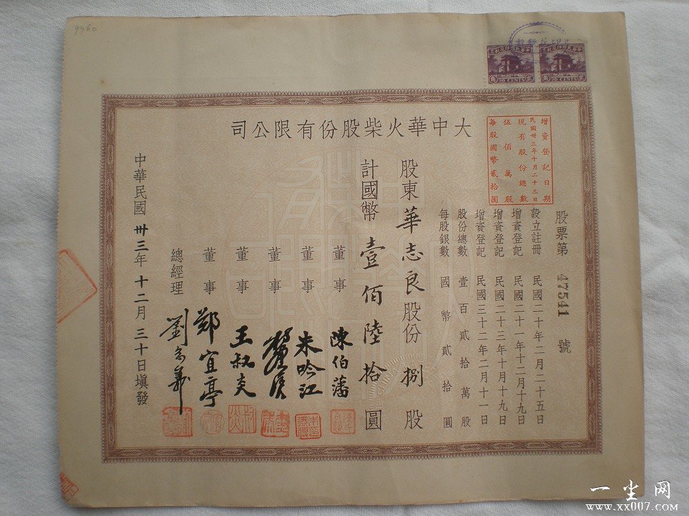 大中华火柴股份有限公司创立于1931年,由上海荧昌火柴厂、苏州鸿生火柴厂和中华火柴厂合并而成.总经理是刘鸿生。“大中华”成为当时中国规模最大的火柴公司,刘鸿生也被人们冠以“中国火柴大王”的称号。