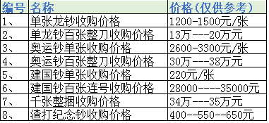 以下是纪念钞报价,仅供参考,具体价格,请来电咨询: