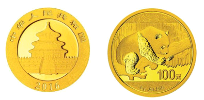 2016版熊猫金币,恢复了以往传统做法,在熊猫金币币面上标明黄金的成色和重量,只不过将计重方式由盎司改变为克,因此而成为首套以克计重的熊猫金币。