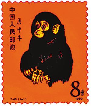 1980年庚申猴票仅有一枚,也是第一套猴票,而且当时仅发行500万枚,编号T46,面值8分,现在炒到1.3万元甚至更高了,身价已翻了约18.8万倍,堪称“珍邮”。因采用雕刻版印刷,猴毛丝丝可见,在充足的光线下犹如真的毛皮一般光彩熠熠,立体感甚强。加之画家黄永玉号称“老顽童”,性情丰富、独特,他笔下的猴子富有童趣,憨态可掬,栩栩如生,十分可爱。