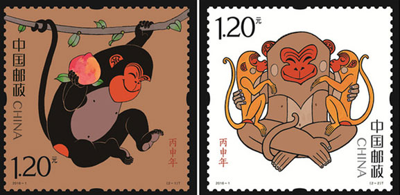 再次,金猴四世齐聚。大师用两枚邮票向我们展现了四只灵活灵现的猴子,大小猴子辈分不同,在春枝瑞桃的衬托下,对四轮邮票进行了全面的总结,既有温情写意,又有家庭团聚。同时,四版猴票小版张中母猴怀抱双孩,意外中于近期国家开放二孩不言而合,让不少集邮爱好者猜测发行单位是否早已经预知政策,有意为之,大大增加了收藏的趣味性。
