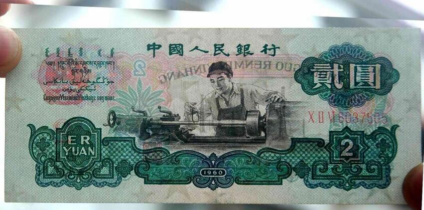 第三版人民币中车床工人图案的2元纸币,被炒到五星水印1820元--古币水印2480元。