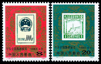 1983年11月29日,邮电部发行《中华全国集邮展览一九八三年·北京》(黄里设计)纪念邮票一套,首次采用了“票中票”,即新邮票里套着一枚旧邮票的图案。
