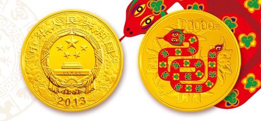 中国人民银行定于2012年10月25日发行2013中国癸巳(蛇)年金银纪念币一套。该套纪念币共15枚,其中金币8枚,银币7枚,均为中华人民共和国法定货币。该套金银纪念币分别由深圳国宝造币有限公司、沈阳造币有限公司和上海造币有限公司铸造,中国金币总公司总经销。