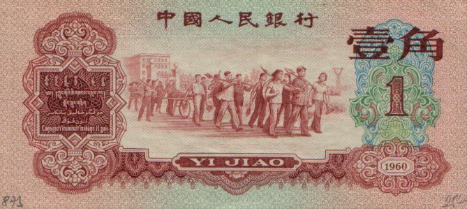 第三套人民币中的60版一角纸币"红一角",券面图案中的人物自左向右前进,这在当时"左右路线"之争甚嚣尘上的年代,犯了严重的"右倾"错误。此后,该券即遭到严苛的回收销毁,存世量骤减。而这个钱币上的"路线错误"却使"红一角"在今天成为收藏界的宠儿,集万千目光与一身。当前市价疯涨几万倍,已是各路藏家奋力寻求的稀世珍品。