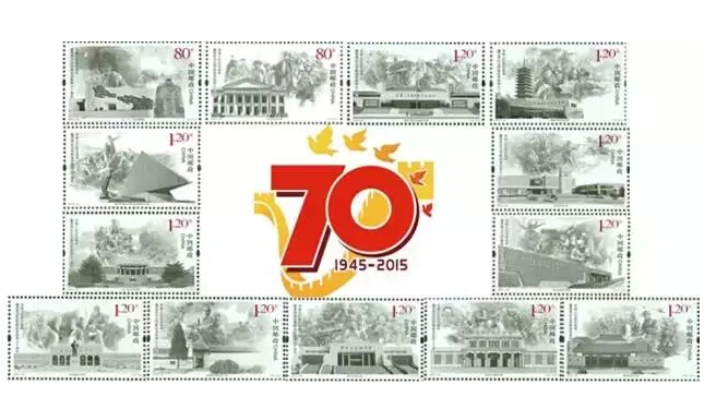一九四五年九月二日,日本向同盟国递交投降书,中国人民在经历长达八年的抗日战争后,最终获胜。为铭记历史和缅怀先烈,中央人民政府把九月三日定为「中国人民抗日战争胜利纪念日」,并在全国各地举办一连串大型纪念活动。二○一五年是抗日战争胜利七十周年,香港邮政发行一款邮票小型张,以志其事。