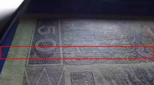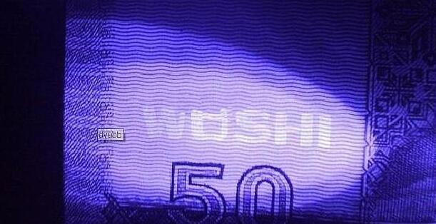 一: 看冠字是否有改动的痕迹:主要看金属线抽离部分。看正面右边三厘米处的金属线抽离部分的边缘部分是否完整,金属线抽离后原来位置会有凹凸感,有些用手摸一下背面能感觉出来。9050的金属线抽走后。但对暗光还是能够看到痕迹的
