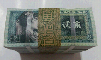 设计精美。1980年2角纸币的设计是公认的美艳,艺术价值极高。在人民币的正面是两个少数民族的少女,她们紧紧相依,面带微笑,目视前方,表现了对未来美好生活的无限渴望。1980年2角纸币主色为蓝绿色,绿中透蓝,颜色由深到浅,由明到暗,对比强烈,使得艺术氛围更加浓烈。