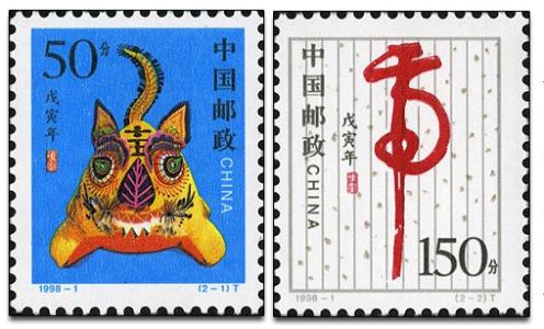 这套邮票,为我国发行的第二轮生肖邮票的第七套。主图为一只玩具布老虎,它出自于晋东南太行山腹地的黎城县城关镇古驼村一位普通的农家妇女高秋英之手。这些富有浓郁乡土气息的民间玩具,即表现了纯朴农家艺人的巧手匠心,又体现了他们对美好生活的向往和追求,洋溢着温润的人情意味,也代表着我国民间布老虎文化的发展和繁荣。这套邮票的设计师通过电脑完成的,就中国生肖邮票而言,以电脑作画此为一例。