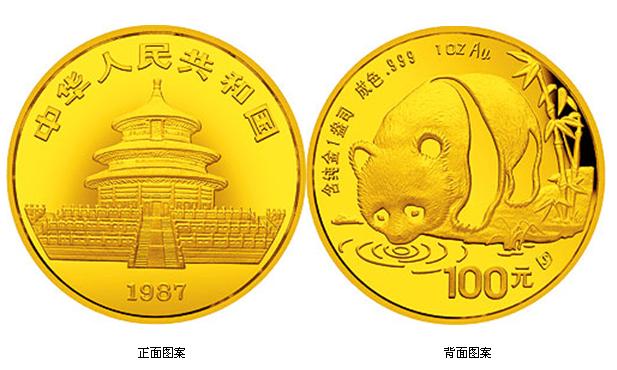 自1982年起,中国人民银行开始铸造发行熊猫金币。此后,每年更换一次背面的熊猫造型图案,而正面均为北京天坛祈年殿外景。背面的图案选取大熊猫不同的姿态进行设计。