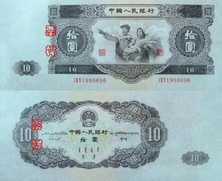 大黑十是指第二套人民币中10元面值的纸币,因为整体色彩为黑色,且是所有人民币中体积最大的,因而被称为“大黑十”,也是由前苏联代印的,其正面图案为男性工人和女性农民的形象,寓意朝着新生活和新希望,左右两侧有“拾圆”字样,上下方分别刊“中国人民银行”和“一九五三年”年号。之后也是因为我国与苏联关系紧张,我国紧张找回了这枚纸币,再加上是第二套人民币中最晚发行的,因而实际流通时间是很短的,如今能够存留下来的已经非常稀少。目前大黑十在市场上的钱币价格是非常高的,钱币价格达到了三十多万,可谓是第二套人民币中的“币王”。