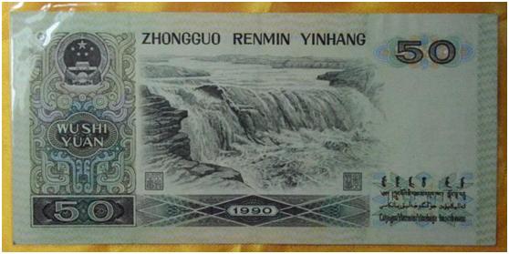 首先说说80版的50元,它是随着第四套人民币于1987年4月27日一同发行的,正面是工人、农民和知识分子头像,币背是黄河壶口瀑布。