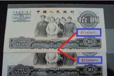 上图小编用红框圈起来的就是三罗马七数字,这种类型的大团结,发行量相对较少,收藏价值比版本一要高。现在市面上的价格单张大约在300左右,当然品相和冠字号数字也是关键因素。