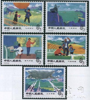 1978年4月25日,我国发行 T24《气象》特种邮票,全套5枚。资料图片